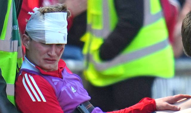 It struck then Aberdeen player Jack MacKenzie in the face, leaving him with a "deep 2in laceration" to his left eyebrow and a "5cm abrasion" below his left eye.