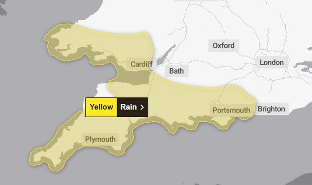 The new yellow warning is for south England and large parts of South Wales, and lasts from 12pm on Monday to midnight.